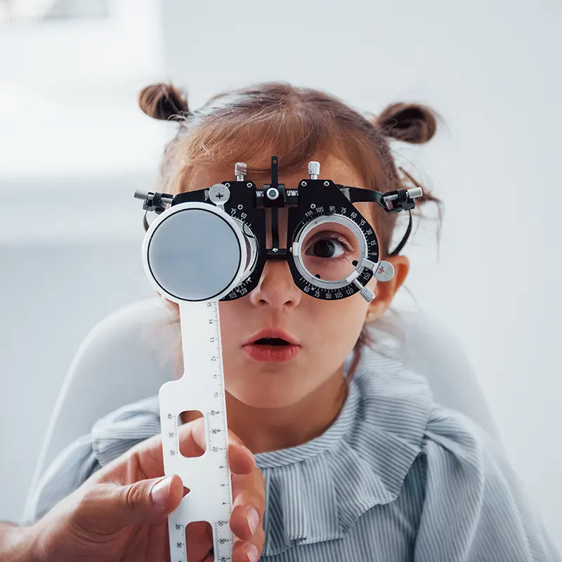- Vision testing for near and distance, which helps us identify nearsightedness early and recommend myopia management if needed
