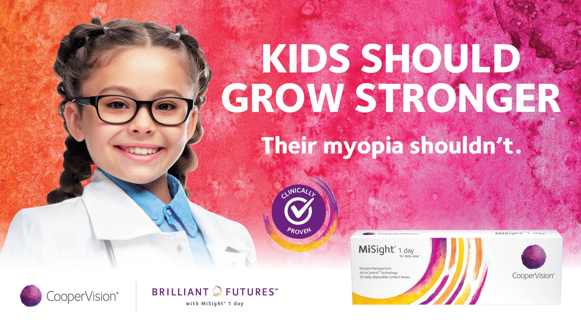 MiSight® 1-day lenses are the first and only FDA-approved soft contact lenses proven to slow myopia progression in children ages 8–12 at the start of treatment. These daily disposable lenses offer a dual benefit: they correct blurry distance vision and help slow the worsening of myopia over time.